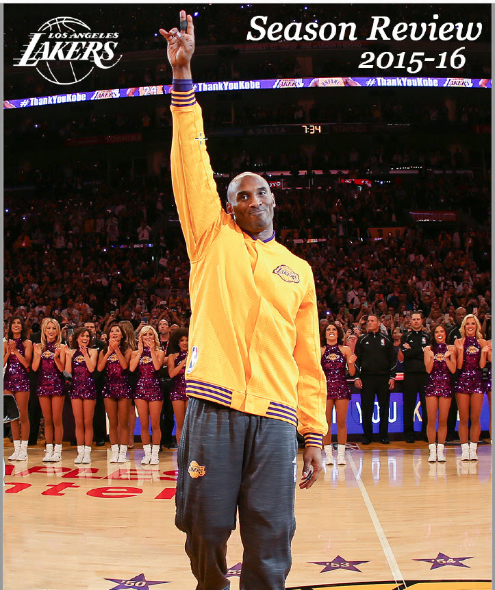2015-2016 was the Laker’s worst year. They finished 17-65 in last place in the Pacific Division. Their .207 winning percentage was second worst in the League. Kobe scored 17.6 points-per-game, considerably below his career norms, although he still led the Lakers in scoring. Nevertheless, the fans honored Kobe. There was a sellout crowd of 18,977 at the Staples Center that night too.