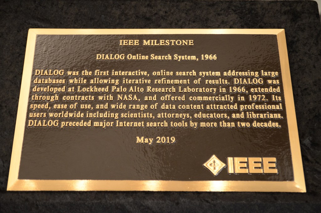 In 2019 the Dialog Online Search System received a Milestone Award from the IEEE
