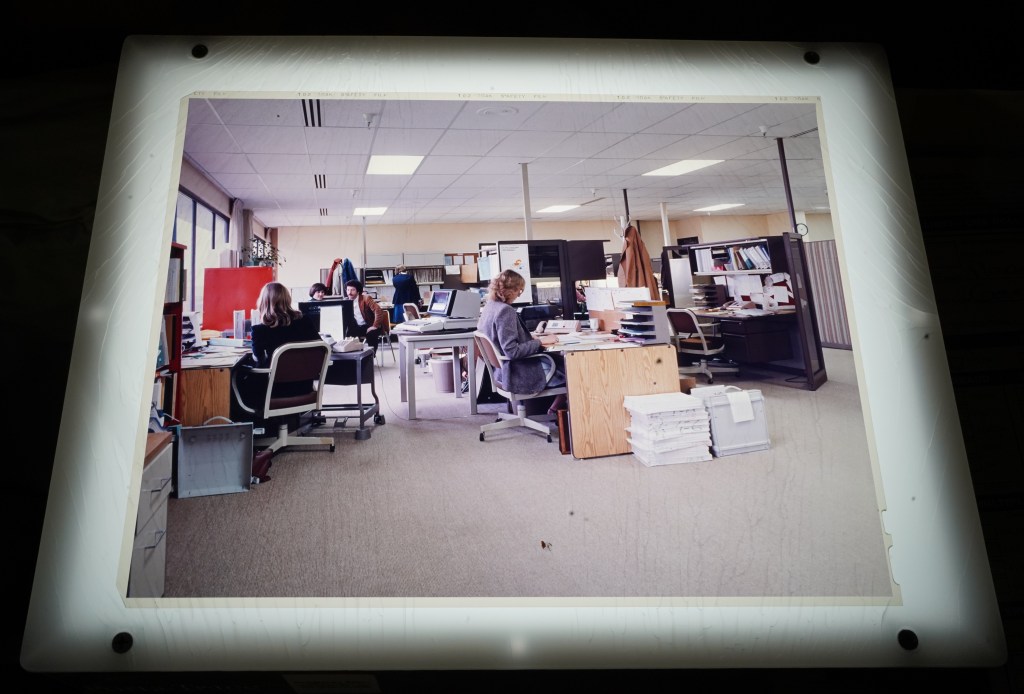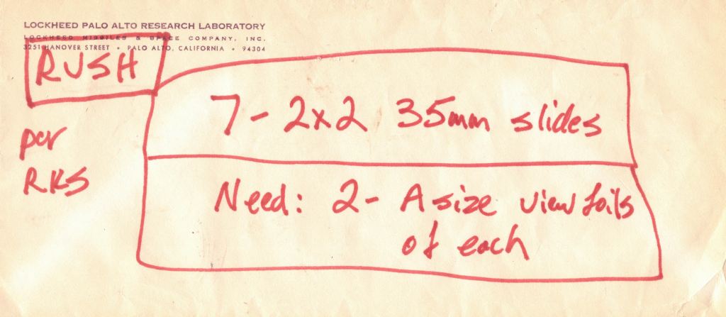 The format of the day was the “A size viewfoil” which was a letter size color transparency, meant for use on an overhead projector. With my background in photography, instructional visuals, and image projection, I began to collaborate with Roger to produce the visuals for these talks. Most of my early assignments were creating photos to illustrate various aspects of the Dialog operations.