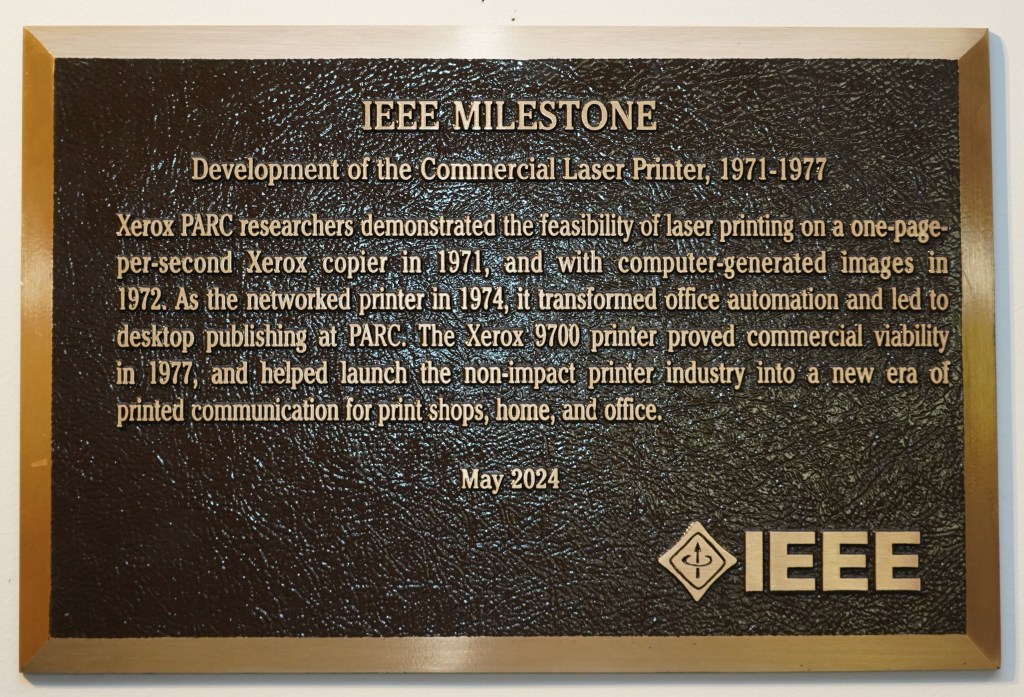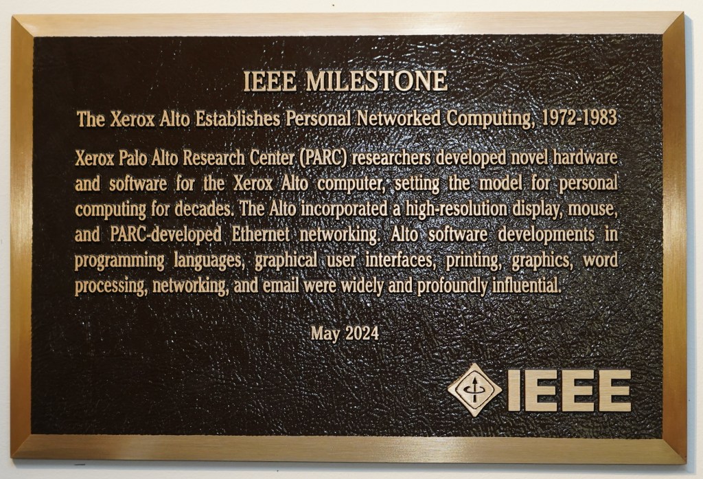 As a reminder, in order to be considered for an IEEE Milestone award, the criteria include: “To be proposed as an IEEE Milestone, an achievement must be at least 25 years old, have benefited humanity, and must have had widespread geographic importance.” This means the new PARC Milestones all occurred under Xerox ownership. The new PARC Milestones are: