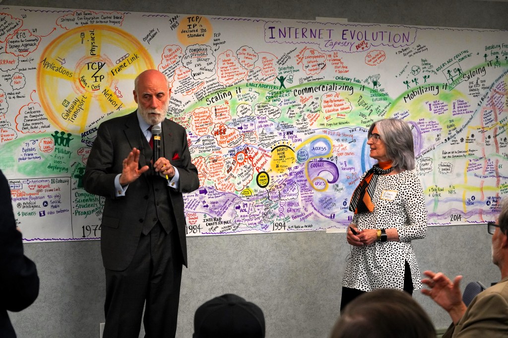 The first panel, “TCP and the Internet – Origins and Subsequent Impact” included Vint Cerf, Robert Kahn (Chair and CEO, Corporation for National Research Initiatives), Judy Estrin (CEO, JLabs) and John Shoch (Office Systems Division President, Xerox PARC – retired). The wide-ranging discussion included technical history and the policy and political considerations in trying to keep the internet moving forward without too much control from corporate or political entities. I was struck with the passion the speakers had to keep the internet safe, accessible, and transparent with an added emphasis on dealing with misinformation and propaganda.